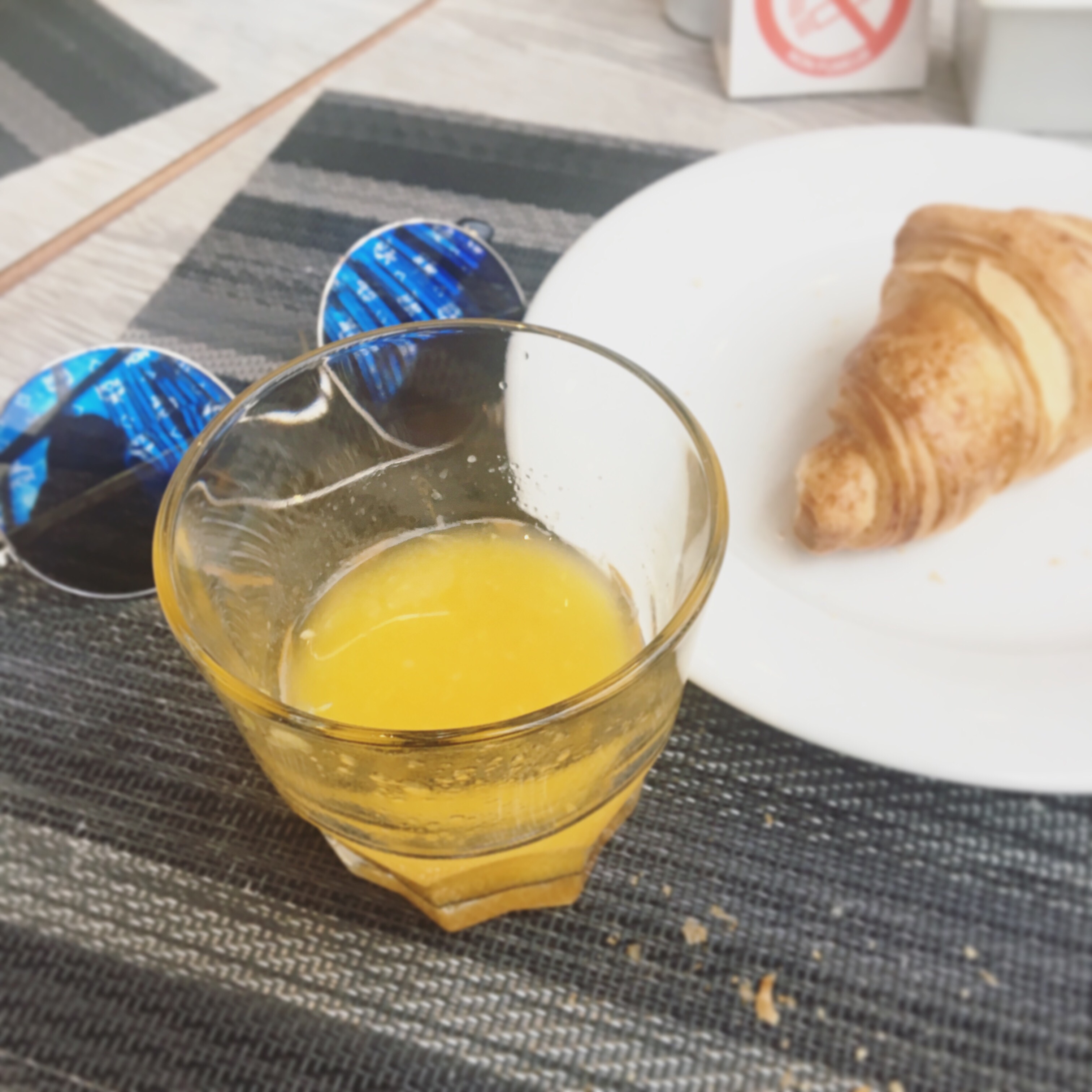 Đã biết trước ko có quán ăn mở cửa, bọn tôi đặt hết hy vọng vào Mc Donald’s, cách ga 10 phút đi bộ. Nhưng cả Mc Donald’s cũng ko mở trước 10h sáng, chỉ có 1 em mèo đen chân trắng đang hài lòng ăn bữa sáng nào đó dưới gầm bàn. Tôi đói đến nỗi suýt thì ăn luôn em mèo đó. Nhưng may có phút thông minh đột xuất, 3 đứa vào Ibis hotel cạnh ga, được bữa sáng buffet ngon lành, chỉ 65 dirham mỗi đứa. Chỉ là bánh mỳ, thịt nguội, bơ mứt, nước cam, sữa, mà thấy may mắn thế. Fan anti đồ chay là tôi thử món thịt nguội, nhưng ko ngon. Nhưng sữa ngon. Và nước cam. Bọn tôi đã đọc những lời giang hồ đồn về nước cam Maroc, chiều qua đã mua cam về ăn. Nhưng phải đến lúc uống nước cam thật sự ở đây, mới biết nó thần thánh ra sao. Chua ngọt vừa phải, thanh tao, đặc sánh và thơm mát. As good as in heaven.