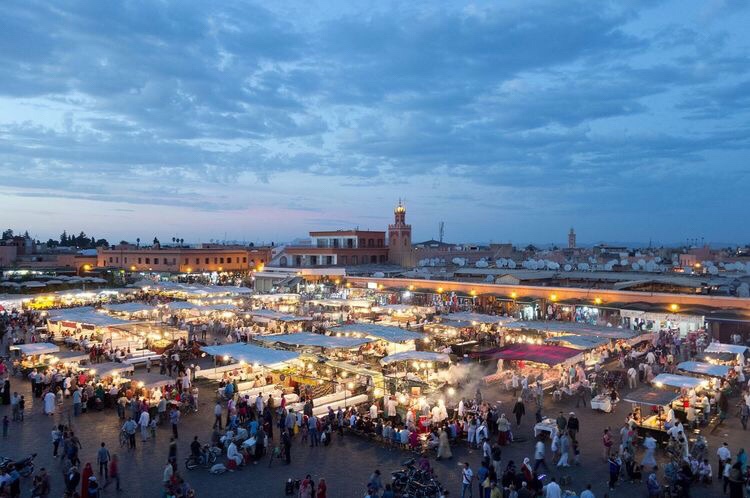 Jemaa el-Fnaa rất đặc trưng là một nơi buôn bán. Xe đồ xếp thành hàng lối, bày đủ mặt hàng. Hoa quả. Đồ ăn. Quần áo. Đèn. Đồ trang sức. Người luyện rắn. Người dạy khỉ. Xe ngựa chạy ngang dọc. Những người bán rong đồng hồ hay nước hoa cũng đi ngang dọc. Bưu điện. Công viên nhỏ. Trạm xe bus. Xe cảnh sát thường đỗ 1, 2 chiếc. Xe cứu hoả. Ở đây có mùi hôi và khai nữa, của cả người và súc vật, ban ngày nắng lên khá là nồng nặc. Nhưng nếu ra từ sớm, khi quảng trường đã được dọn sạch sẽ, không khí còn lạnh, thì lại không thấy cái mùi signature đó nữa. Chiều tối, nắng tắt là gió mạnh hẳn lên, mọi người cũng dọn dẹp chuẩn bị giờ cầu kinh tối rồi về nghỉ, hoặc ăn tối ngay tại sạp hàng để bán tiếp buổi khuya. Tôi thấy món Moroccan soup ở hầu hết các phần ăn của họ, ở VN không thấy món nào phổ biến hàng ngày hàng bữa như vậy.