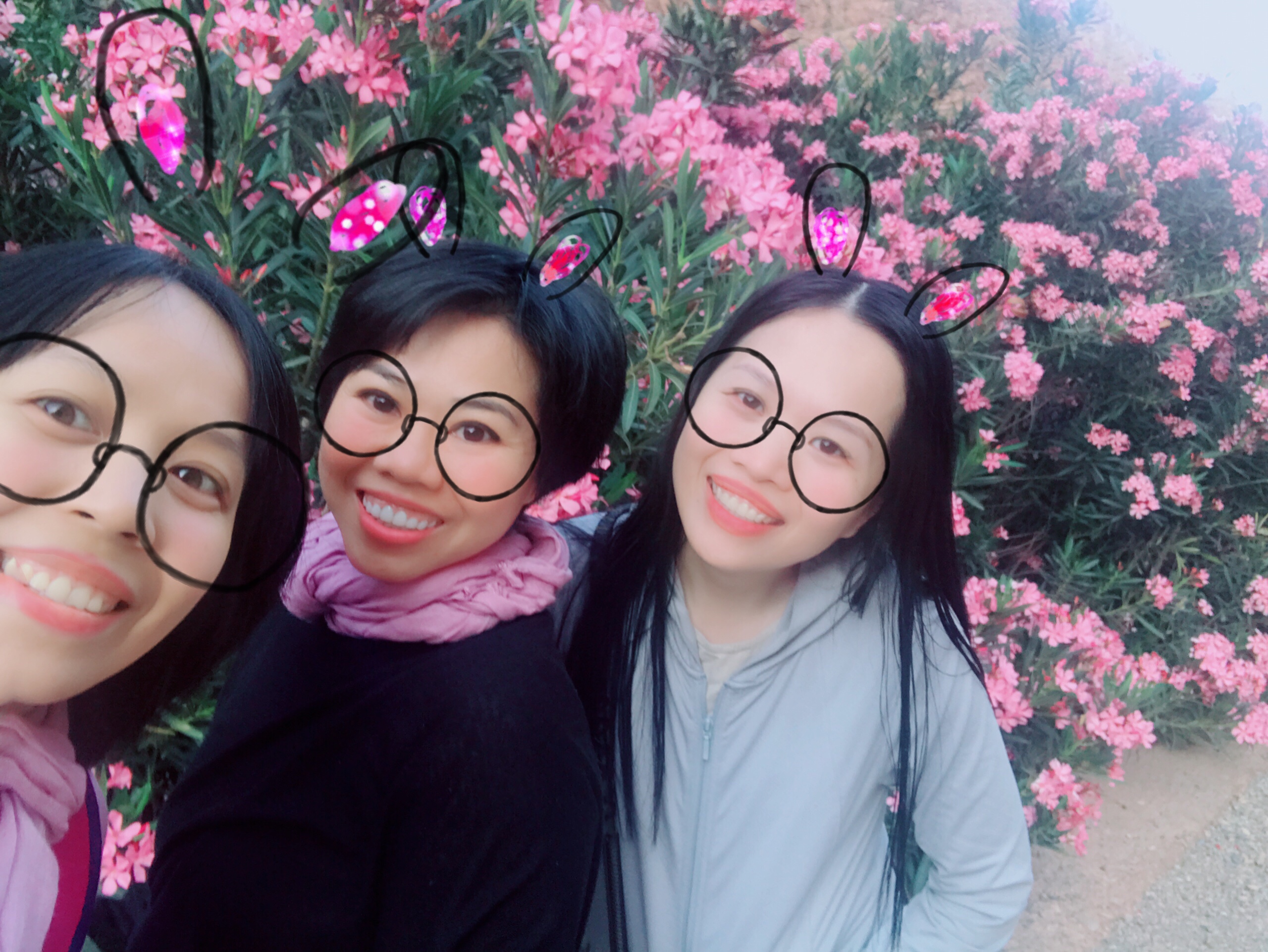 Ba đứa dậy sớm nên đi dạo, ngắm hoa, chụp ảnh. Có một cây mơ với những quả mơ xinh vô cùng, như có thắp đèn bên trong.