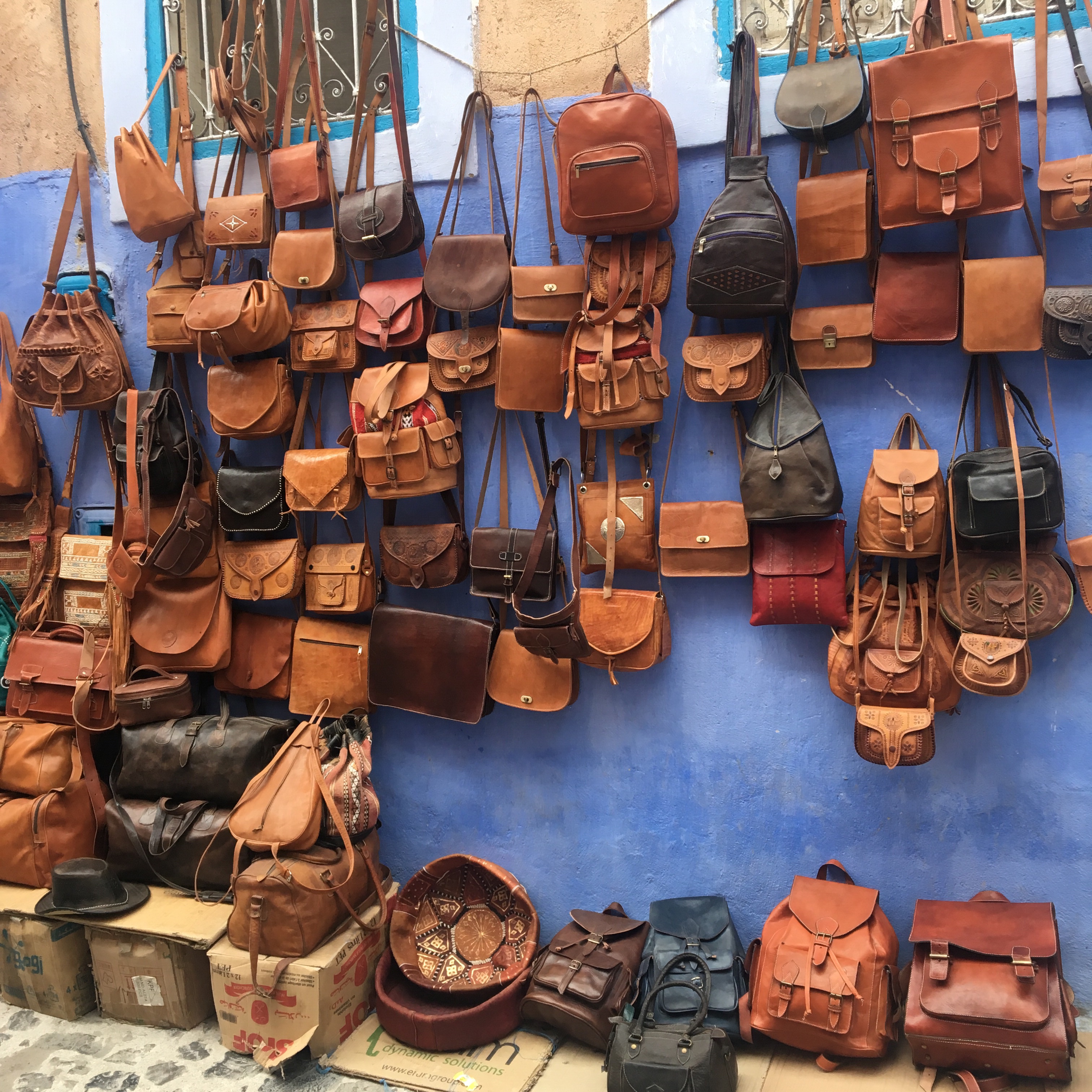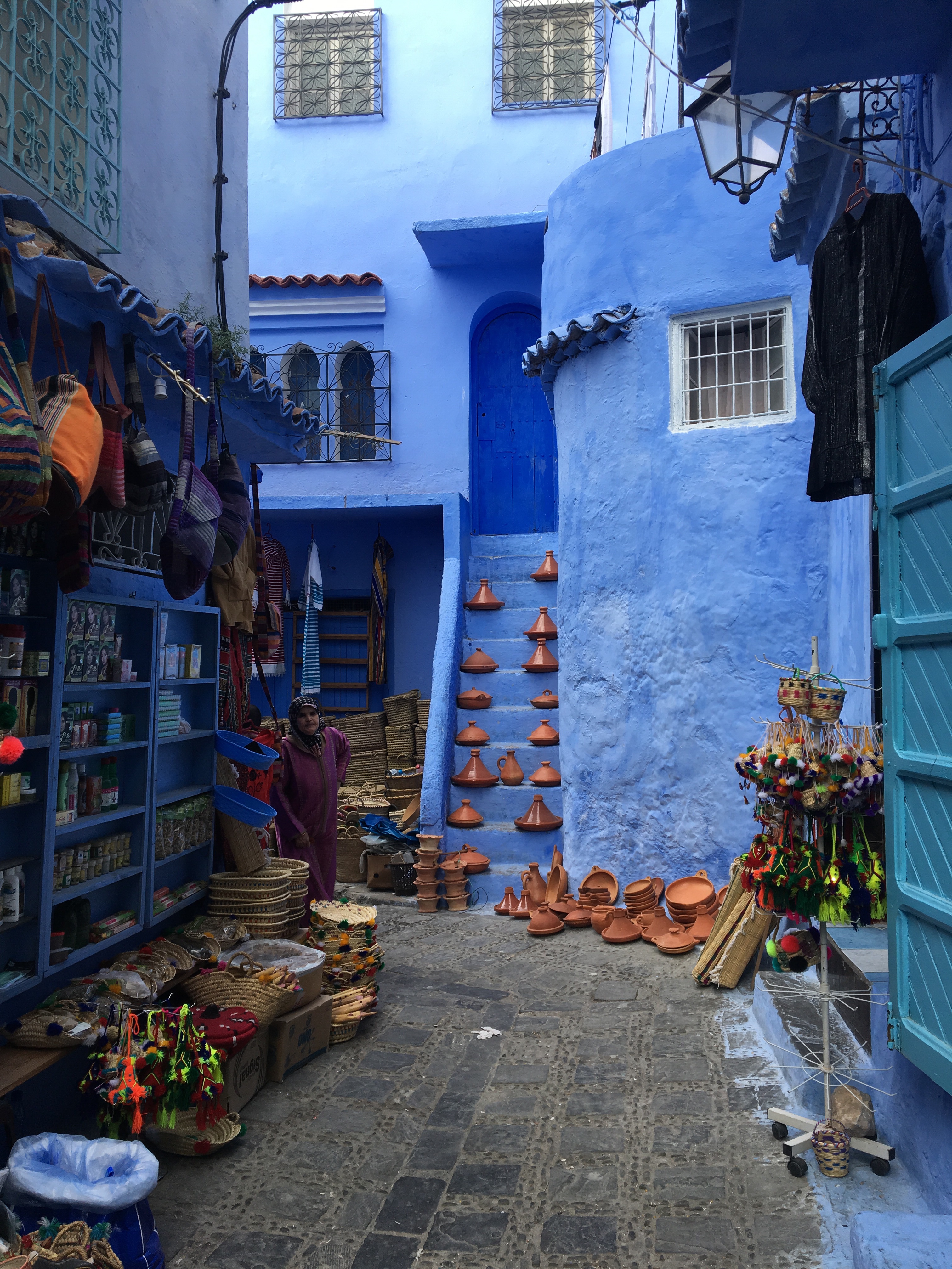 Cũng như ở những nơi bọn tôi đi qua, có thể gặp những cửa hàng nhỏ bán đồ da, quần áo ở những nơi khuất nẻo, người bán hàng tươi cười dễ chịu, tuy họ nói thách nhưng vẫn có thể trả giá một cách hoà bình. Trên bậc thang bày những cái nồi truyền thống để nấu món tagine của người Maroc. Nhưng thú thật chúng tôi ngán món tagine này quá trời rồi.