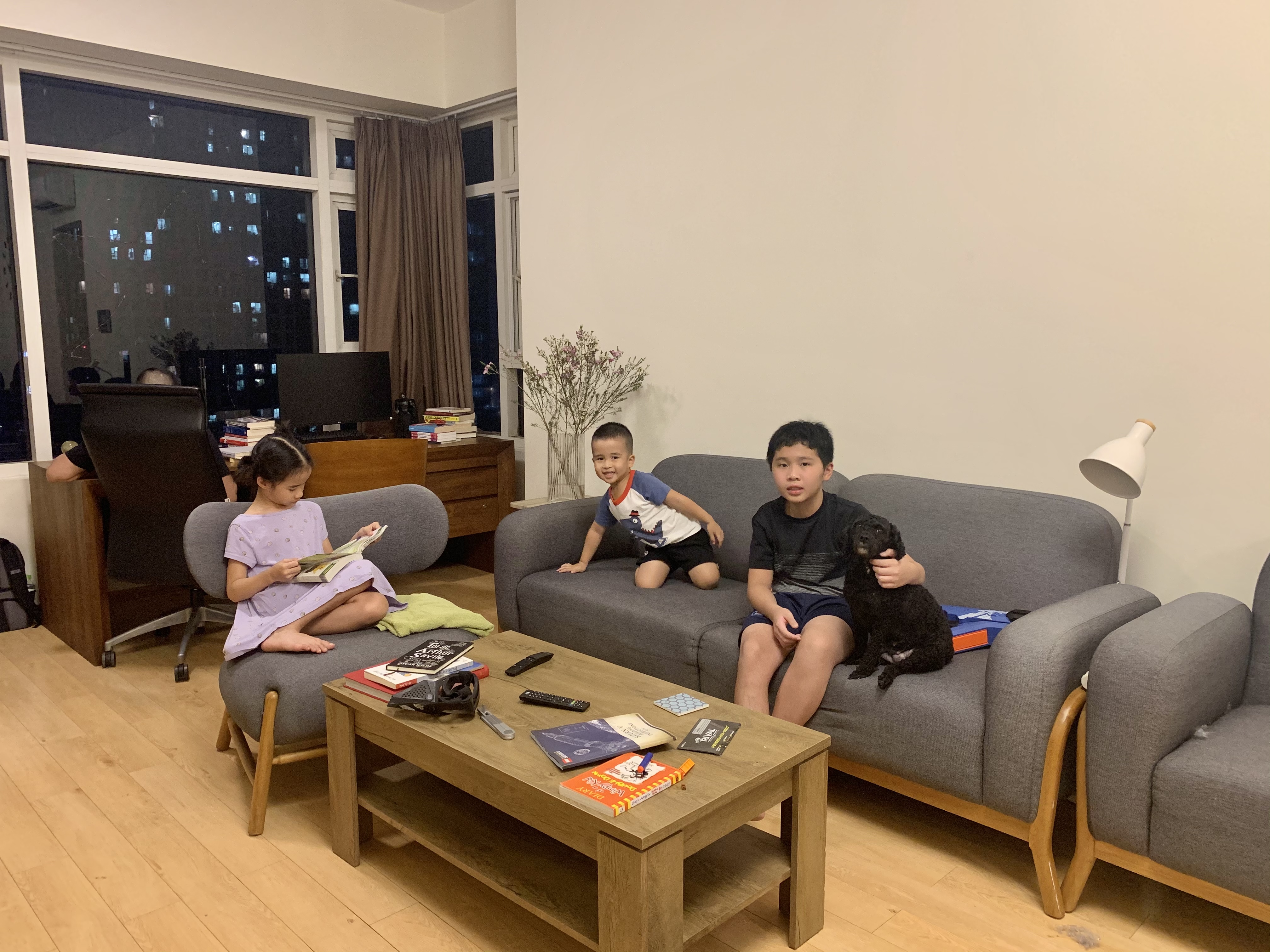 Những ngày cuối năm 2020, nhà Gió đổ bộ vào SG. 2 ngày đầu Gió sợ Bisou, không dám đến gần, thỉnh thoảng lắm mới vuốt “chị”. Đến tối qua bác Cương đi làm về, thì đã có một diễn biến nhỏ trong vòng hai phút. Như thế này. Bisou đang ở dưới gầm bàn ăn. Bác Cương chui vào ôm Bisou vào lòng. Gió cũng chui vào theo, ngồi gần Bisou. Hai chị em nhìn nhau và Bisou thơm Gió, thơm mấy cái liền. Gió không sợ gì nữa. Sau đó Gió lùi mông chui ra, vừa ra vừa nhận xét: “Bisou đáng yêu thật!”