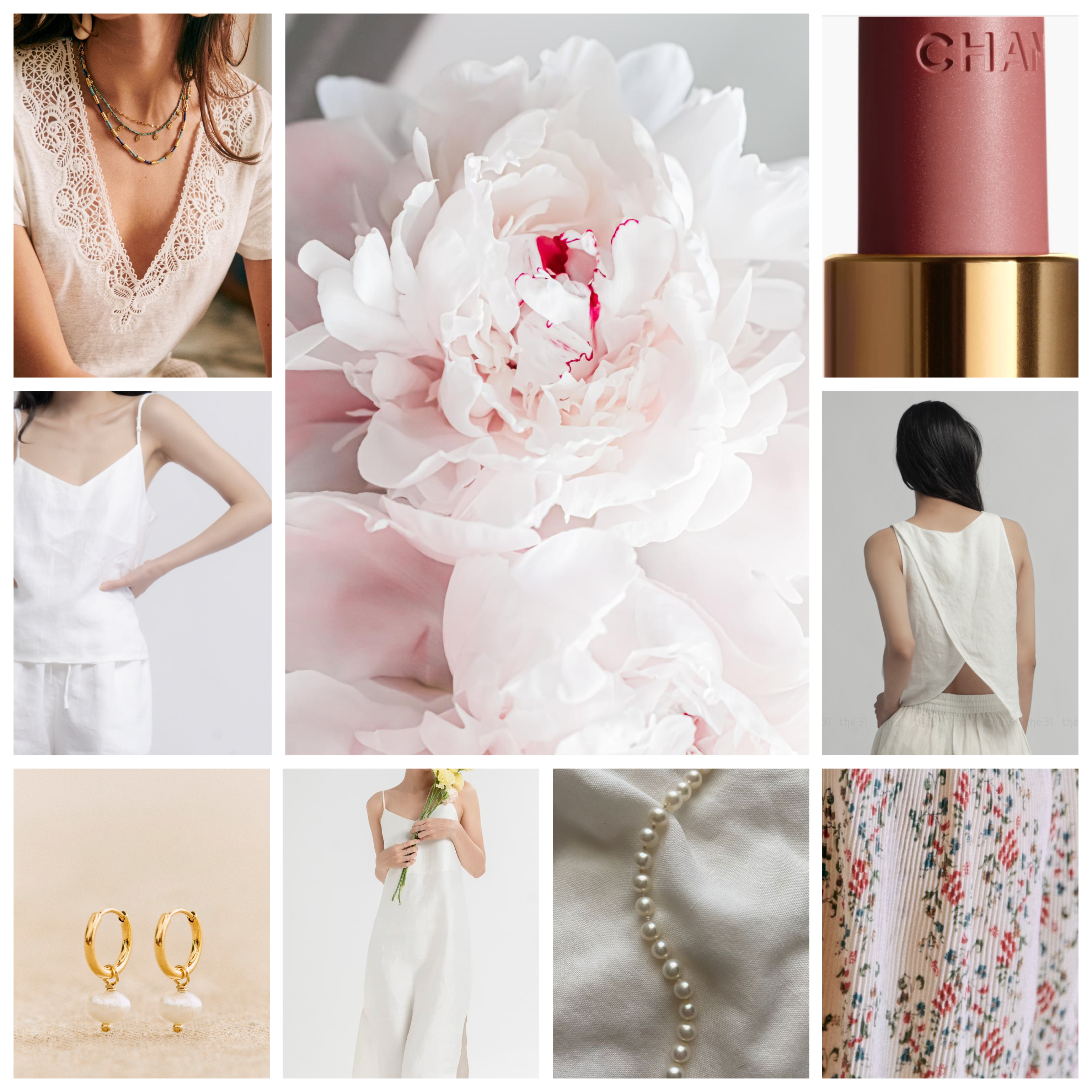 Bảng màu, hay moodboard cho mùa hè năm nay của tôi là màu hồng, bên cạnh trắng hay kem trung tính. Bình thường tôi thích những màu trắng, xanh, đen, hầu như không quan tâm đến màu hồng. Nhưng chỉ cần để ý đến nó một chút thôi, thì sẽ yêu mến nó. Đó là sắc màu trong sáng, trìu mến, làm ta dịu lòng và tin tưởng.