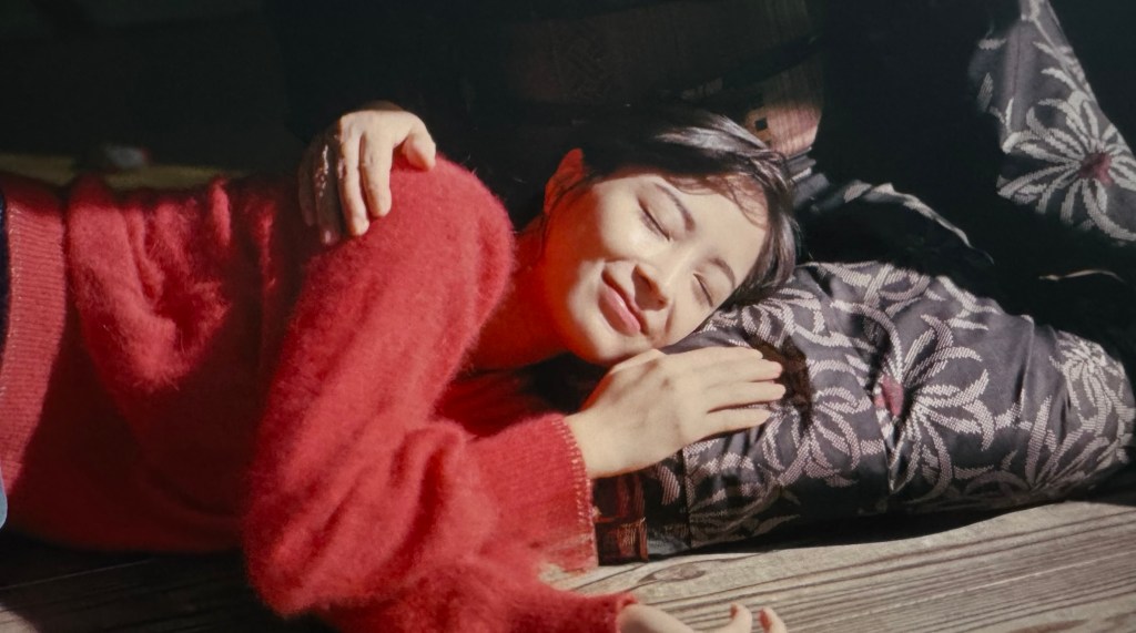 Tôi thích nhất là cô em út, xinh như búp bê. Nhìn cô tươi sáng, vui vẻ, nhưng khi cô rơi nước mắt thì cả thế giới như từ từ tan vỡ. Nhờ có cô mà những khung hình được thêm màu đỏ, màu cam, hoa, những đồ trang sức lấp lánh. Tôi sẽ không thể quên vẻ đẹp của khoảnh khắc cô gối đầu lên lòng mẹ, màu len đỏ gối lên nền kimono hoa cúc nâu trầm, bàn tay mẹ cô dịu dàng vỗ về vai cô cũng giống cách mẹ vỗ cho tôi ngày xưa. Nụ cười từ mắt, từ miệng cô sáng lên trên nền hoa cúc ấy đẹp đúng như những gì tôi hình dung về một thời hoa niên vô tư và hạnh phúc – những năm tháng rực rỡ như hoa.