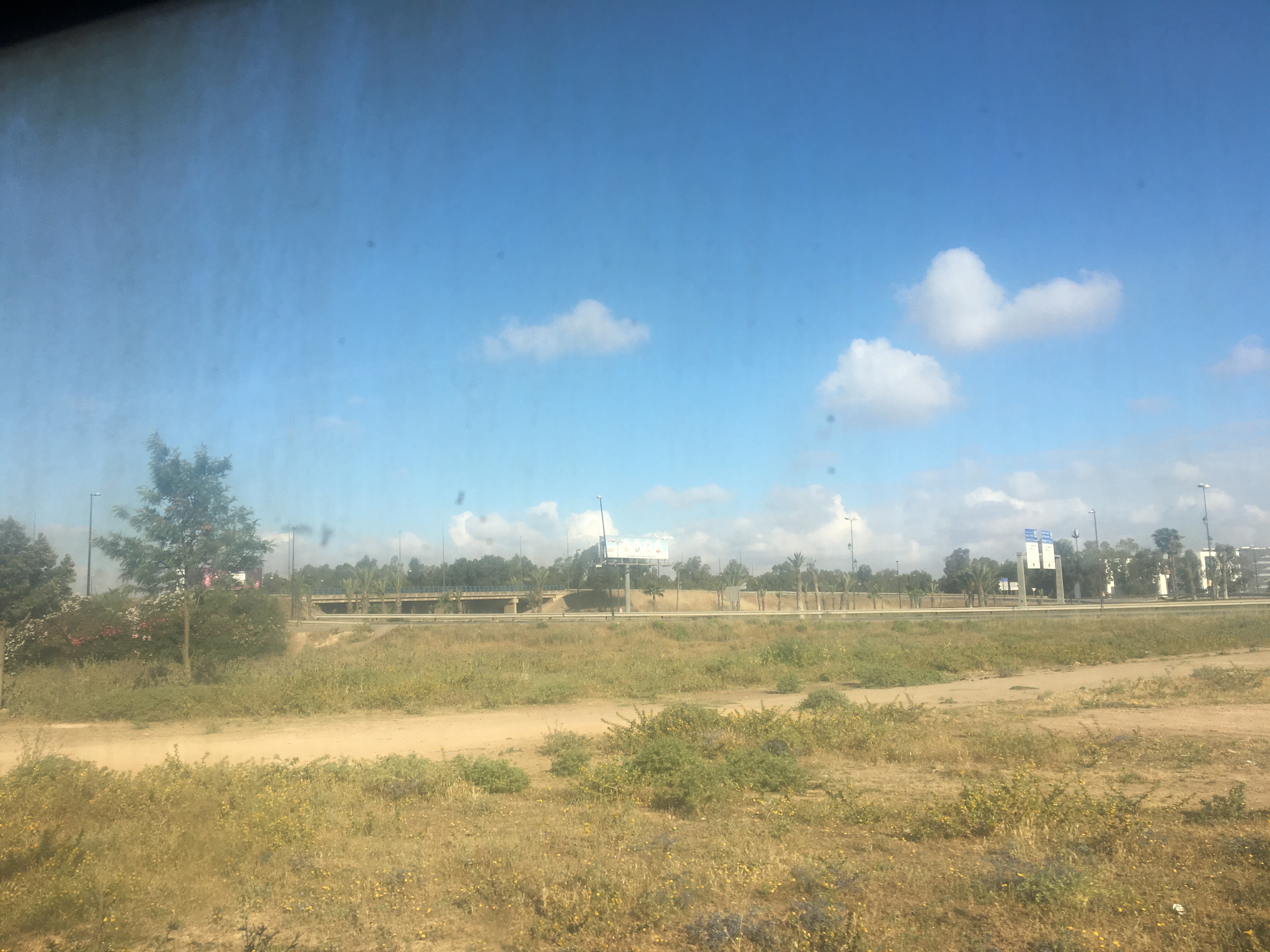 Đường từ sân bay về thành phố thì thật sự là đơn điệu. Hai ảnh này tôi chụp qua cửa sổ tàu. Tàu rất cũ, không có điều hoà, cửa sổ rất mờ.