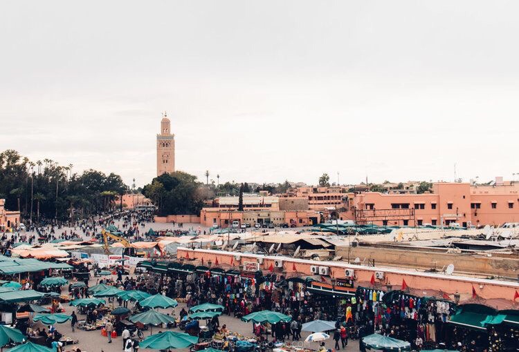 Jemaa el-Fnaa rất đặc trưng là một nơi buôn bán. Xe đồ xếp thành hàng lối, bày đủ mặt hàng. Hoa quả. Đồ ăn. Quần áo. Đèn. Đồ trang sức. Người luyện rắn. Người dạy khỉ. Xe ngựa chạy ngang dọc. Những người bán rong đồng hồ hay nước hoa cũng đi ngang dọc. Bưu điện. Công viên nhỏ. Trạm xe bus. Xe cảnh sát thường đỗ 1, 2 chiếc. Xe cứu hoả. Ở đây có mùi hôi và khai nữa, của cả người và súc vật, ban ngày nắng lên khá là nồng nặc. Nhưng nếu ra từ sớm, khi quảng trường đã được dọn sạch sẽ, không khí còn lạnh, thì lại không thấy cái mùi signature đó nữa. Chiều tối, nắng tắt là gió mạnh hẳn lên, mọi người cũng dọn dẹp chuẩn bị giờ cầu kinh tối rồi về nghỉ, hoặc ăn tối ngay tại sạp hàng để bán tiếp buổi khuya. Tôi thấy món Moroccan soup ở hầu hết các phần ăn của họ, ở VN không thấy món nào phổ biến hàng ngày hàng bữa như vậy.