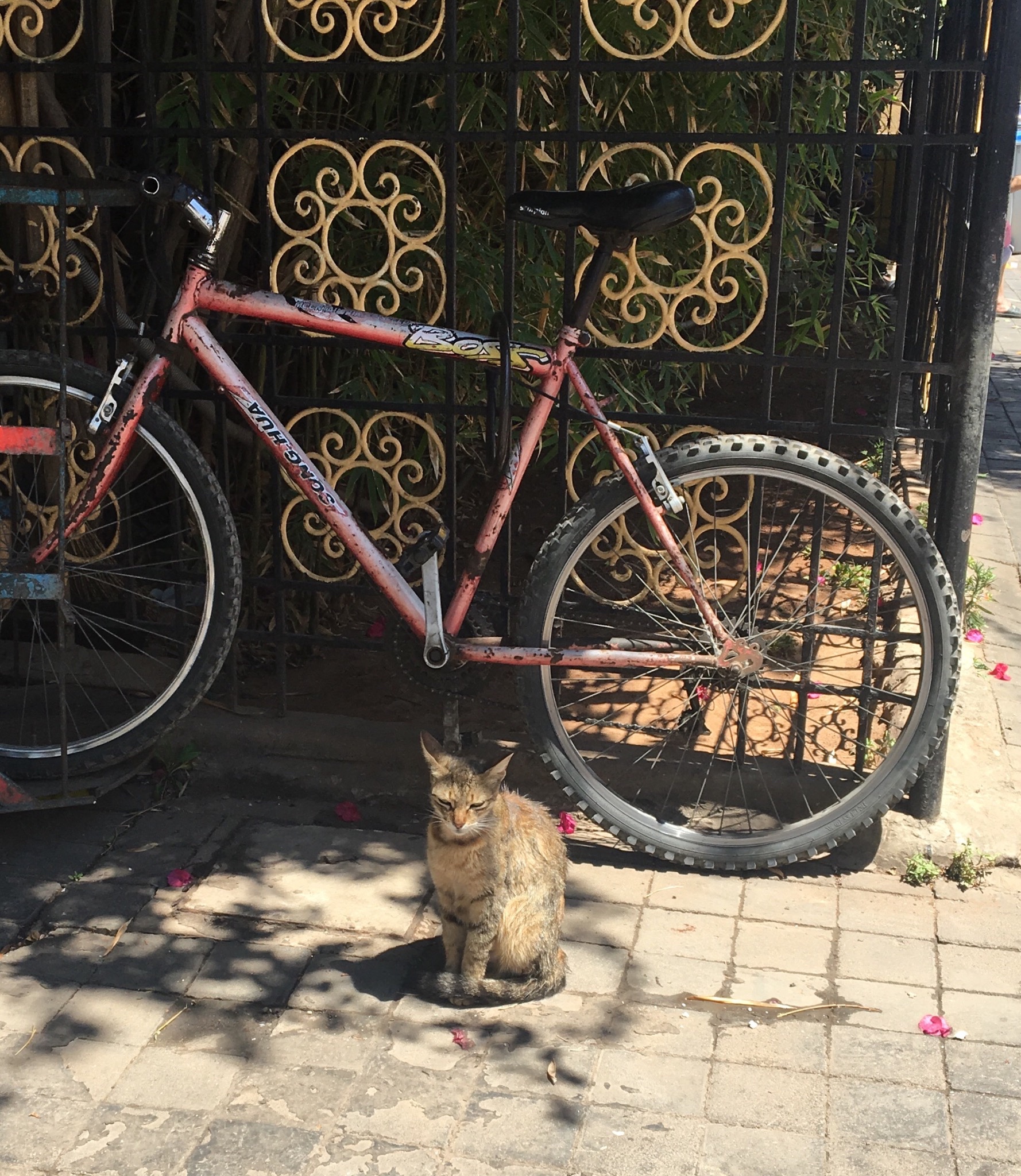 Khu phố này dễ thương. Nắng chang chang. Ngoài đường vắng người. Chỉ có mèo là nhiều. Bọn mèo nằm, ngồi la liệt trên lòng đường, vỉa hè, nắp capo ô tô, cạnh bánh xe, với vẻ mặt lười biếng và chúa sừng khá truyền thống, như bọn chúng mới là chủ nơi này. Có vẻ như ko có nhiều giống mèo khác nhau, chỉ chênh nhau chút về màu lông, gầy béo, mặt mũi thì hơi nhọ nhem nhưng đều chảnh choẹ.